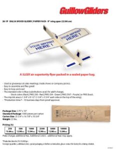 250 pc. minimum order for all balsa gliders.