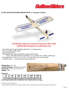 250 pc. minimum order for all balsa gliders.