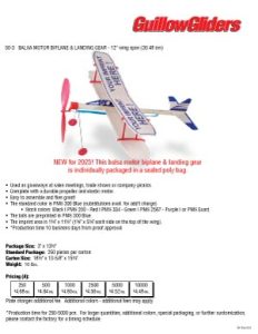 All balsa gliders are individually packaged in a clear heat sealed poly bag. Poly bagged gliders are then bulk packed.